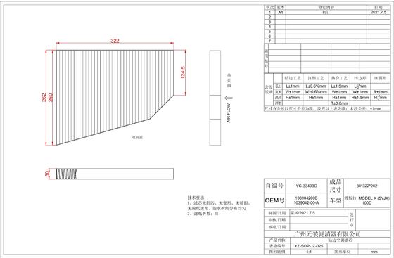Tesla Model X Cabin Filter High Quality Filter N95 Merv9, Merv11, Merv13
